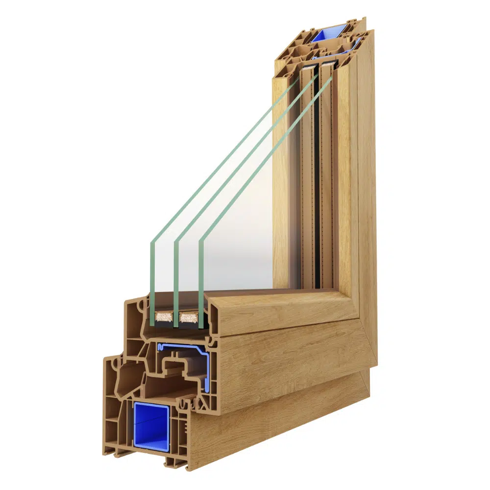 7-Kammer-Rahmenprofil und 6-Kammer-Flügelprofil der RAL-Güteklasse A mit einer Einbautiefe von 82mm (Rahmen) und 86mm (Flügel)